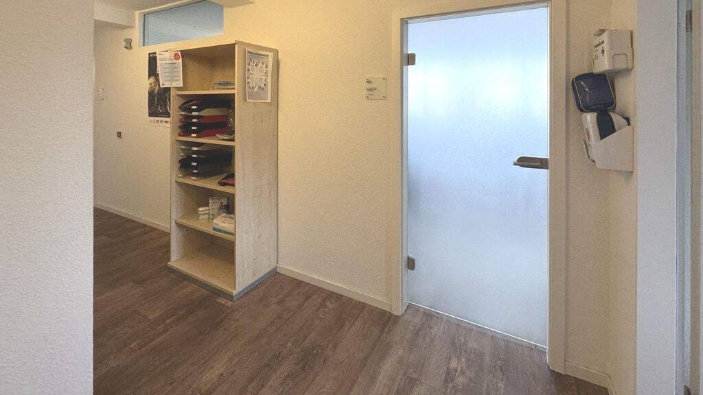 Ausgestattet ist die Einheit mit zeitgemäßem Laminatboden sowie fest installierter Deckenbeleuchtung. Ein separater Raum für eine Teeküche ist vorhanden und unterstützt einen angenehmen Arbeitsalltag. Ergänzend stehen ein praktischer Abstellraum sowie getrennte Sanitärbereiche für Damen und Herren zur Verfügung.