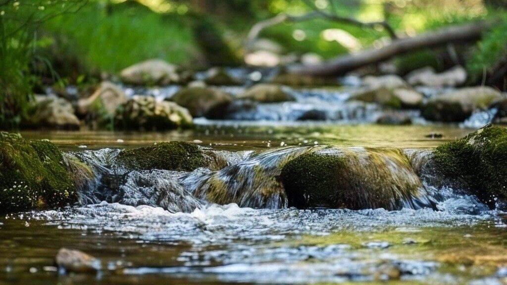 Besonders charmant: Am unteren Ende des Grundstücks fließt ein kleiner Bach entlang. Er bleibt selbst bei Starkregen unauffällig, trägt aber mit seinem leisen Plätschern spürbar zur idyllischen Atmosphäre dieses Platzes bei.