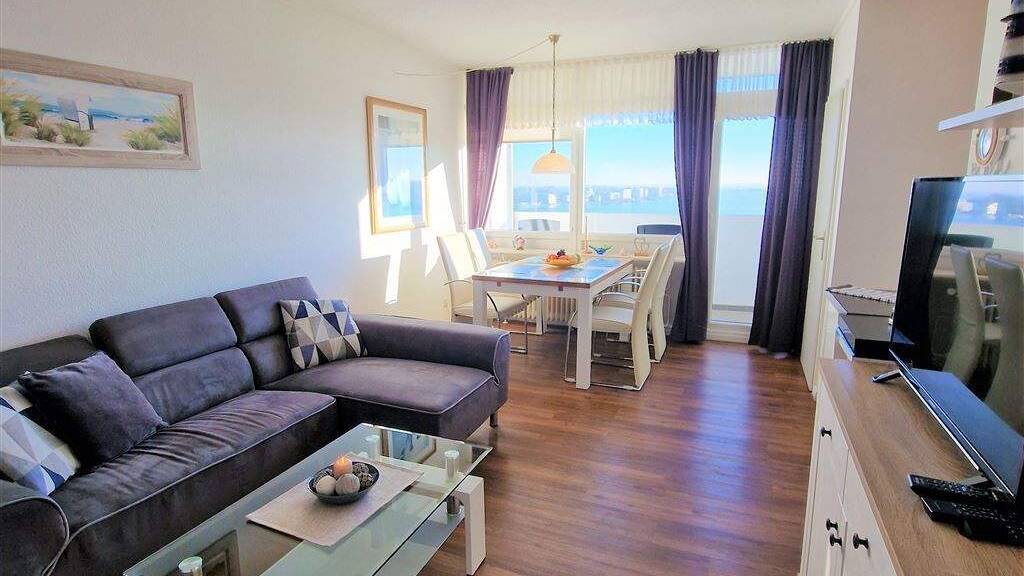 Die Unterkunft liegt im 9. Stock eines Gebäudes mit Aufzug und verfügt über einen eigenen Balkon mit Gartenmöbeln, der einen guten Ausblick auf die Ostsee und die angrenzende Landschaft bietet. Ein Sichtschutz für alle Fenster gewährleistet Privatsphäre. Das Wohnzimmer ist mit einer gemütlichen Sofaecke, Esstisch, TV mit Satellitenanschluss, HiFi-Anlage, DVD- und CD-Spieler sowie Radio ausgestattet. Die gesamte Unterkunft ist mit Fliesen ausgelegt und somit pflegeleicht.