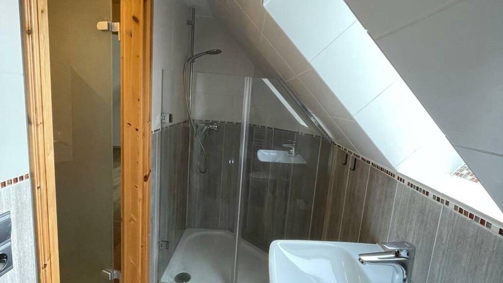 Dachgeschosswohnung (53 m²): Diese charmante Einheit, die 2019 ausgebaut wurde, besticht durch ihr modernes Ambiente. Sie verfügt über ein Wohnzimmer mit offener Küche, zwei Schlafzimmer und ein stilvolles Badezimmer mit Dusche. Der großzügige Flurbereich lädt mit einem Sitz- und Arbeitsplatz zum Verweilen ein. Die Heizungsversorgung erfolgt elektrisch, wobei im Wohn- und Kochbereich Natursteinheizkörper und in den Schlafzimmern Infrarotheizungen installiert sind.