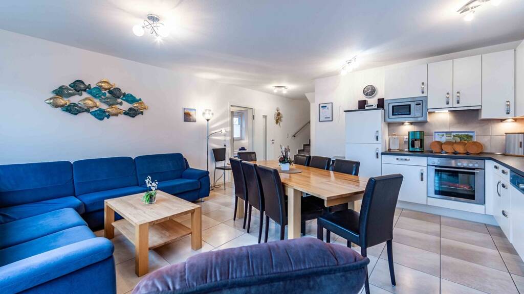 Die großzügig geschnittene 125 m² große Ferienwohnung erstreckt sich über zwei Etagen (OG und DG) und befindet sich in einem 2012 erbauten Mehrfamilienhaus mit insgesamt vier Wohneinheiten. Volle Punktlandung für diesen Wohntraum: Die Ferienwohnung verfügt über vier Schlafzimmer und drei Bäder mit Dusche und WC. Hier haben wirklich alle Platz , und es gibt genug Ausweichmöglichkeiten. Gemütliche gemeinsame Stunden mit viel Raum für alle: Das geht ganz wunderbar im großen Wohn-Essbereich mit voll ausgestatteter Küche.
