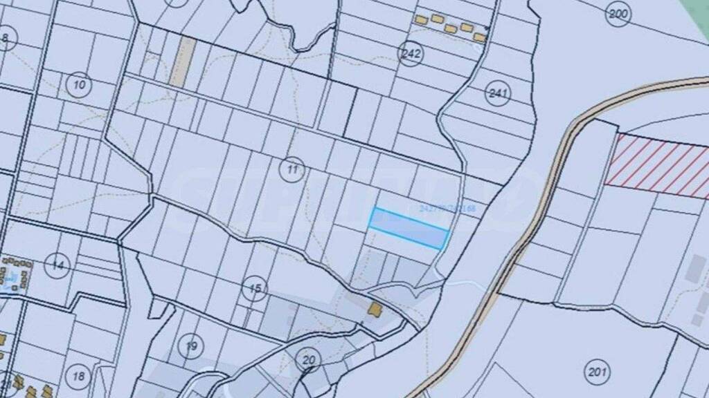 Das Grundstück hat eine Fläche von 3994 m², ist gut erreichbar und liegt in der Nähe der Hauptstraße und der Verkehrswege, wodurch es sich für den Bau von Wohn- oder Gewerbeimmobilien eignet.