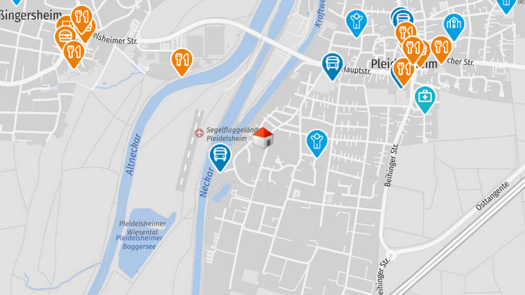 Die Immobilie befindet sich in angenehmer und gewachsener Wohnlage von Pleidelsheim, einer beliebten Gemeinde im Landkreis Ludwigsburg. Die Nachbarschaft ist geprägt von überwiegend Ein- und Zweifamilienhäusern und bietet ein harmonisches Wohnumfeld mit hoher Lebensqualität.