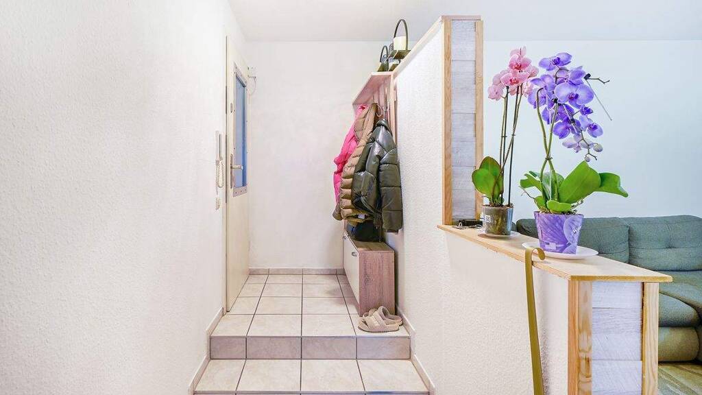 Beim Betreten des Objekts gelangen Sie in den einladenden Wohnbereich, der nahtlos in die offene Küche übergeht. Die hochwertigen Fliesenböden sorgen für eine moderne und pflegeleichte Atmosphäre. Das großzügige Schlafzimmer bietet Rückzugsmöglichkeit und Ruhe nach einem langen Tag.