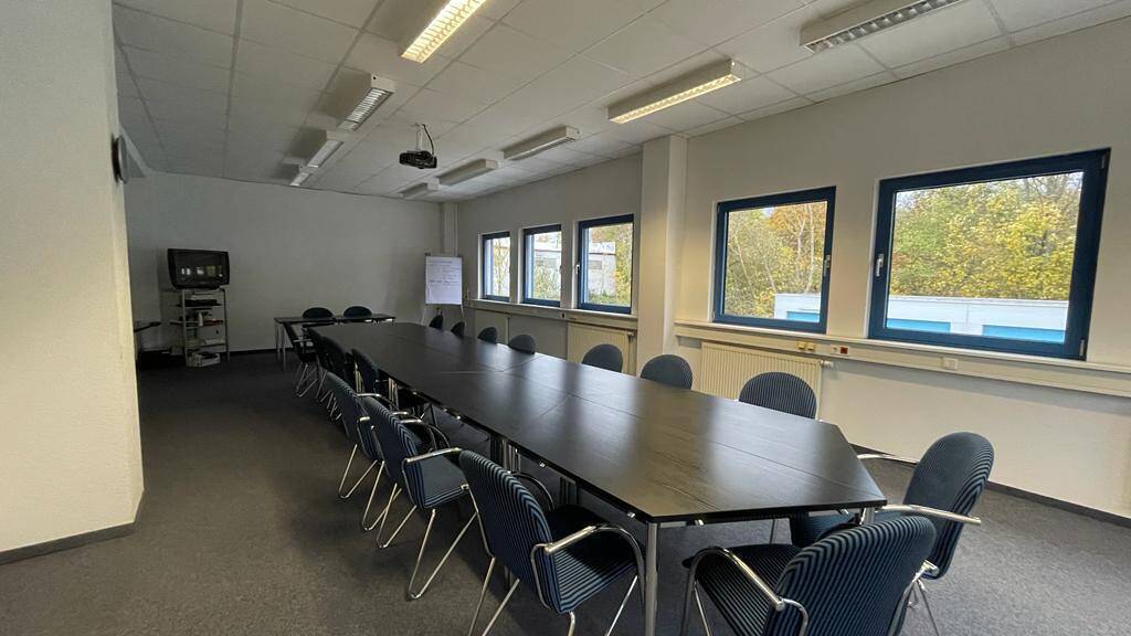 Der großer Büroraum bietet ausreichend Platz für Meetings, Präsentationen oder Schulungen und kann nach Absprache durch eine Trockenbauwand in zwei separate Büros unterteilt werden.