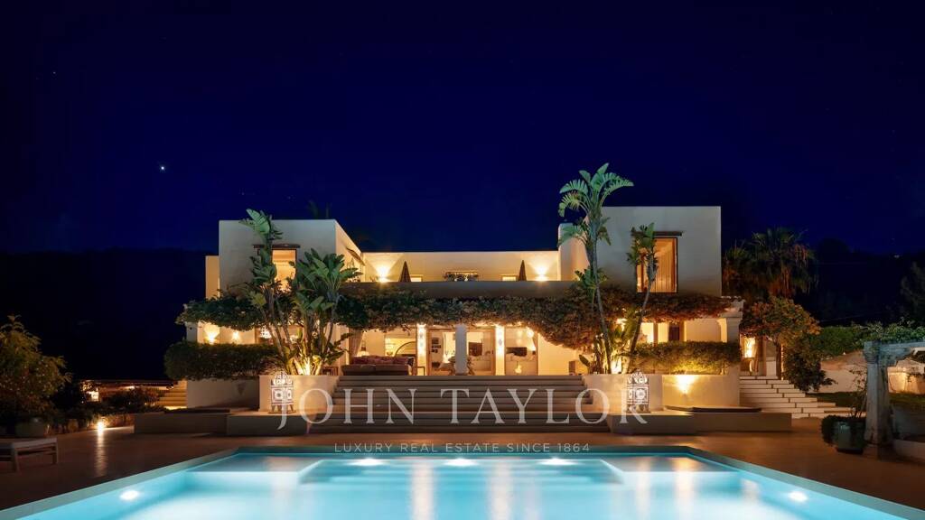 Eingebettet in die Gegend zwischen dem Dorf Sant Josep und der Stadt Ibiza, bietet dieses exquisite Anwesen in Sant Jordi eine unvergleichliche Mischung aus Luxus, Komfort und spektakulärer Naturschönheit. Inmitten weitläufiger, sorgfältig gestalteter Gärten genießt die nach Süden ausgerichtete Immobilie ungestörte Ausblicke auf üppige Felder, den ruhigen Naturpark Ses Salines und die fernen Küsten von Formentera.