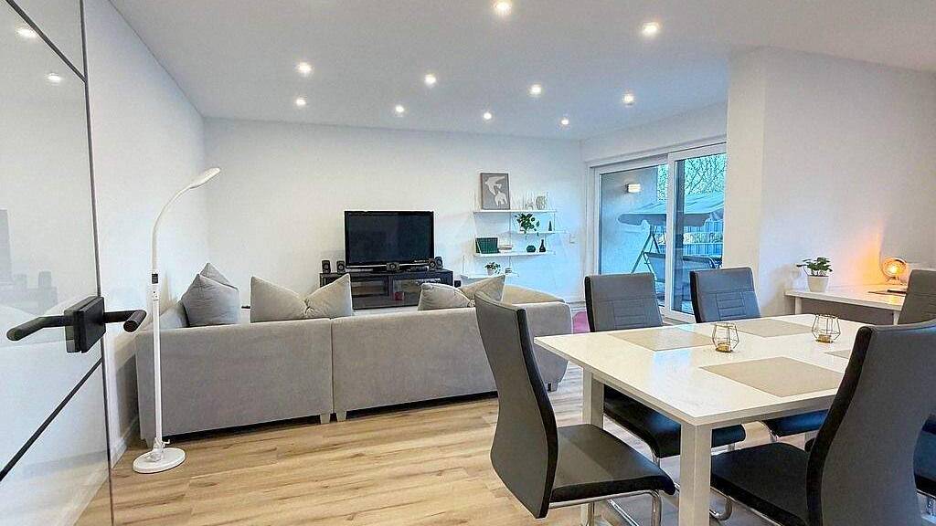 Moderne und hochwertige Möblierung, Kork/Vinylboden, neuwertige Küche, Backofen/Herd, Kaffeemaschine, Toaster. Steuerbare Rollladen, neue Fenster und Schiebetür. Smart-TV (50 Zoll), WLAN Internetanschluss. Tageslicht Duschbad, Waschmaschine und Trockner im Souterrain. Fahrradraum vorhanden.
