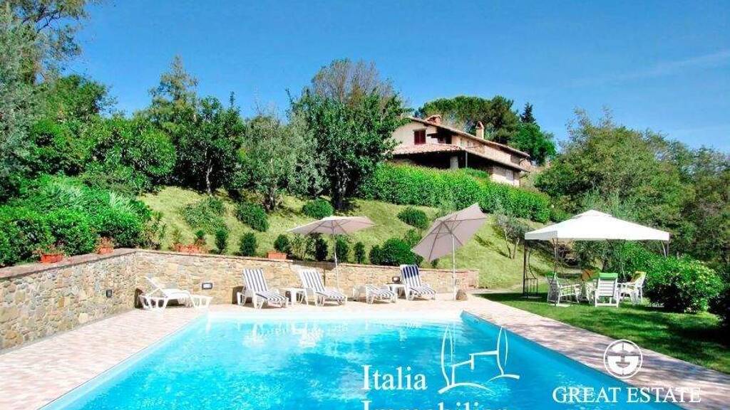Casale dei Ritratti ist ein schönes Bauernhaus aus Stein mit Panoramablick auf die grünen Hügel des Monte San Savino. Das Anwesen umfasst eine Fläche von 350 qm auf 3 Ebenen. Der Zugang zum Haus erfolgt über einen Kiesweg in dem herrlichen Garten, der das Bauernhaus umgibt. Im Erdgeschoss befindet sich ein großes Wohnzimmer mit Kamin, von dem aus man auf eine große Panoramaterrasse mit Holzbalken gelangt, eine Küchenzeile, 2 Schlafzimmer, ein kleines Schlafzimmer und 2 Bäder. Über eine bequeme Treppe aus Terrakottafliesen erreicht man das Untergeschoss mit 2 geräumigen Zimmern und einem separaten Eingang sowie das Dachgeschoss, das aus einem großen Wohnbereich mit Terrasse und einem kleinen Schlafzimmer mit Bad besteht. Das Anwesen wird durch einen schönen 6x12 m Swimmingpool und einen 3820 qm großen Garten vervollständigt.