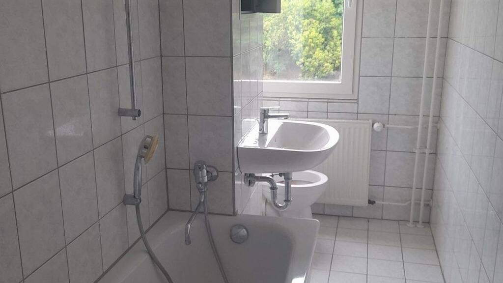Die Fußböden der Zimmer sind mit einem Laminatboden versehen. Das Bad (mit Fenster) ist mit Wanne, Waschbecken und WC ausgestattet. Die Wände und der Fußboden sind ansprechend und hell gefliest. Eine kleine Einbauküche, inkl. Elektroherd mit Backofen und Spüle ist ebenfalls vorhanden. In der Küche befindet sich auch ein Waschmaschinenanschluss.