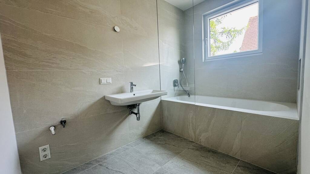 Der Balkon erweitert den Wohnraum nach draußen und bietet einen schönen Platz für den ersten Kaffee am Morgen oder einen entspannten Abend an der frischen Luft. Besonders angenehm sind das helle Tageslichtbad und das Gäste-WC, beide mit Fenstern, was den Räumen eine natürliche Leichtigkeit verleiht. Kleine feine Details im Bad setzen besondere Akzente und geben dem Raum eine persönliche Note, ohne aufdringlich zu wirken.