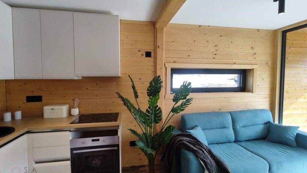 Premium Materials and Modern Design: These villas are built using natural materials, with wood as the base. The interiors feature Tarkett parquet, high-end Spanish ceramics, and wood-aluminum windows. The insulation is a combination of extruded polystyrene and mineral wool, ensuring energy efficiency and comfort. Outside, you'll find a pergola that serves as an open garage for two vehicles, along with a covered area for barbecues and relaxation, complete with a storage space.