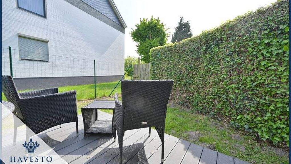 Die angrenzende Terrasse mit eigenem Gartenanteil ist direkt vom Wohnbereich aus zugänglich und bietet eine geschützte Rückzugsmöglichkeit im Freien.