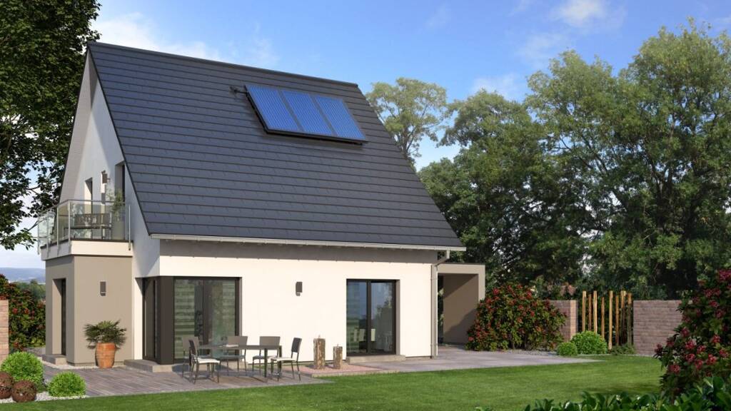 Die mitgelieferte Architektenleistung garantiert nicht nur ästhetische Qualität, sondern auch ein intelligentes Design, das Ihre individuellen Bedürfnisse berücksichtigt. Sie können sich auf ein pflegeleichtes und hochwertiges Pfettendach freuen, das sowohl funktional als auch ästhetisch ansprechend ist. Die Dachrinnen und Fallrohre aus Titanzink verleihen nicht nur eine ansprechende Optik, sondern sorgen auch für Langlebigkeit und Schutz.