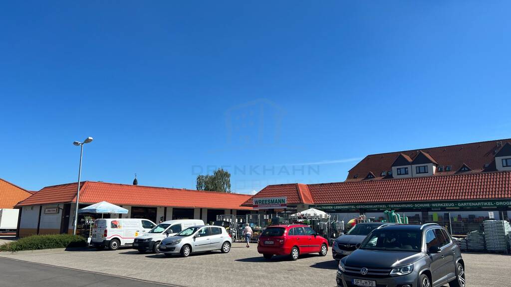 Bei der hier angebotenen Immobilie handelt es sich um einen eingeschossigen, in Massivbauweise erstellten Zweckbau und insgesamt ca. 396 m² vermietbare Nutzflächen. Die Flächen befinden sich in der Mitte des Gebäudes, zwischen einem Imbiss und dem Kaufhaus Wreesmann.