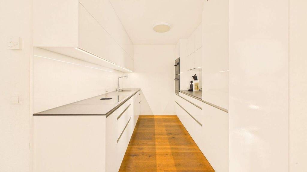 Die Küche ist hochwertig ausgestattet und überzeugt durch moderne Markengeräte. Verbaut sind unter anderem ein Induktionskochfeld mit integriertem Dunstabzug von Bora, ein Backrohr mit Pyrolyse-Funktion sowie ein Dampfgarer von Bosch. Die Ausstattung ist durchdacht gewählt und bietet hohen Komfort im täglichen Gebrauch.