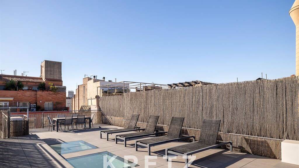 In a modern and exclusive building located in the very heart of the city, this 146 m² penthouse offers direct access to a 30 m² terrace. The residence features contemporary design and top-level finishes. A living room flooded with natural light and a dining area open to a fully equipped American kitchen. Two en-suite bedrooms. A private 146 m² rooftop with a pool and panoramic views over all of Barcelona, in one of the city's most coveted neighbourhoods.