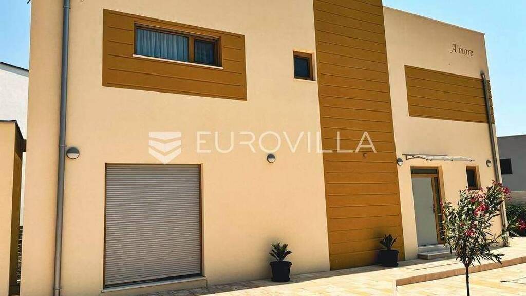Ugljan, Preko, u mirnom i slikovitom mjestu, na otoku nasuprot Zadru, nalazi se ova moderno uredena vila za odmor kategorizirana s 4 zvjezdice, s uporabnom dozvolom dobivenom 2024. godine. Zahvaljujuci izvrsnoj prometnoj povezanosti s kopnom - trajektna linija vozi svakih sat vremena i putovanje traje svega 20 minuta - ova kuca nudi idealan spoj otockog mira i gradske dostupnosti.Kuca ukupne neto povrsine 172,32 m² smjestena je na prostranoj parceli od 688m2 i raspolaze s 3 spavace sobe, 3 kupaonice, potpuno opremljenom kuhinjom i dnevnim boravkom, kao i podrumski uredenim prostorijama (veseraj, kotlovnica, spremiste i konoba). Uz nju dolaze dodatne terase - prizemna od 40 m² i krovna od 60 m² s pogledom na more, pergolom i pripremom za jacuzzi. Uz kucu se nalaze i pomocni objekt (spremiste 3,45 m²) te natkriveni prostor u dvoristu od 15,7 m².Posebnu vrijednost kuci daju brojne moderne i luksuzne znacajke: grijani bazen dimenzija 9x4 m s pergolom i lezaljkama, vanjski komin, podno grijanje po svim etazama (s pripremom za ugradnju toplinske pumpe), pametni sustavi zakljucavanja i otvaranja, pet Panasonic klima uredaja, HI-FI sustav, dekorativna i senzorska rasvjeta, kao i pripreme za videonadzor, solarnu elektranu i punionicu za elektricna vozila.Kuca je gradena vrhunskim materijalima: fasada od kamene vune sa silikonskim zavrsnim slojem, PVC stolarija s troslojnim staklima i elektricnim roletama, staklene ograde na terasama, unutarnja vrata sa zvucnom izolacijom, keramika visoke kvalitete, Grohe sanitarije, austrijska kuhinja DanKuchen, Egger laminat te stubiste od pravog hrasta. U vrtu ogradenom panelnom ogradom s kliznim vratima nalaze se uredeni zeleni prostori sa zasadenim maslinama i smokvama, uz sustav navodnjavanja kap po kap i vise vanjskih slavina.Kuca ima energetski certifikat A i A++, spojena je na kanalizaciju, vodovod, struju i internet, a odvoz otpada je organiziran. Internet pristup je osiguran na svim etazama putem hotspotova.U blizini nekretnine nalaze se svi potrebni sadrzaji poput ducana, ljekarne, kafica, trznice, ribarnice...Za sve ostale informacije, slobodno nas kontaktirajte.... Vise na eurovilla.hr, ID: 977974