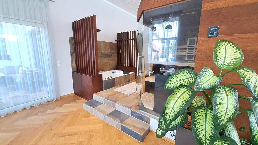 Großzügige Wohnräume mit ca. 3,90m Deckenhöhe, große Glasflächen mit außenliegender Beschattung, Designer Sauna mit Infrarot, Whirlpool, Fußbodenheizung mit Wärmepumpe, Hochwertige Bodenbeläge, Steuerung mit Loxone (Übernahme Inventar nach Vereinbarung).
