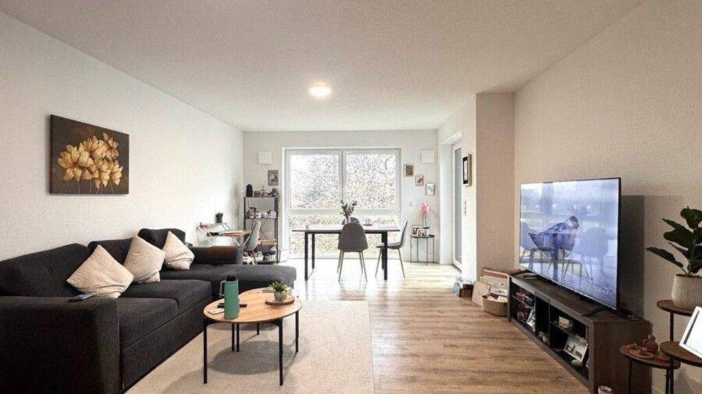 Der helle Wohn- und Essbereich präsentiert sich offen und bildet den Mittelpunkt der Wohnung. Die bereits vorhandene hochwertige Einbauküche ist im Mietpreis inbegriffen. Angrenzend befindet sich ein ruhig ausgerichteter Balkon, der einen angenehmen Rückzugsort im Freien schafft.
