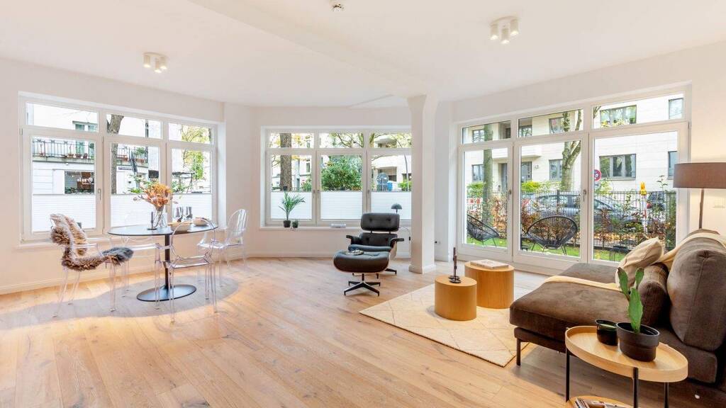 Die Ausstattung der Wohnung auf einen Blick: - Moderner Grundriss mit offener Wohnküche - Bad mit bodengleicher Dusche und Waschmaschinenanschluss - Fußbodenheizung in allen Räumen - Neue Holzfenster mit Einbruchschutz - Neue Innentüren und Hamburger Fußleisten - Echtholz-Parkett in allen Wohnräumen - Moderne Elektroausstattung inkl. Medienverteilung