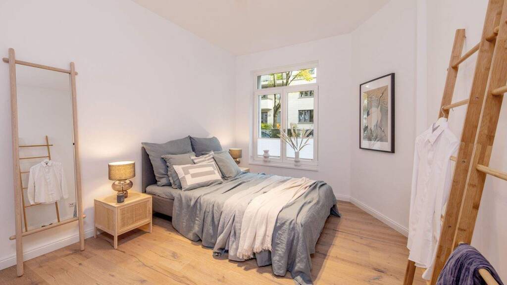Der schöne Altbau wurde ca. 1910 mit fünf Vollgeschossen errichtet und in 2020- 2023 modernisiert und renoviert. Die Arbeiten umfassten unter anderem die Umnutzung von zwei Gewerbeflächen zu Wohnraum, die Sanierung von vier Wohnungen innerhalb der Regelgeschosse, den Einbau von neuen dunklen Holzfenstern sowie die Dämmung der obersten Geschossdecke. Das Treppenhaus wurde komplett renoviert. Die Beheizung der beiden neuen Wohnungen im Erdgeschoss und der sanierten Wohnung im 1. Obergeschoss erfolgt über eine neue Gas-Brennwertheizung im Keller und die Warmwasseraufbereitung über Durchlauferhitzer. Alle Wohnungen verfügen über einen Abstellraum und einen gemeinschaftlichen Fahrradkeller.