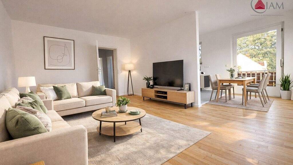 Diese frisch renovierte Wohnung befindet sich im 1. Obergeschoss und überzeugt durch eine durchdachte Raumaufteilung sowie ein angenehmes Wohnambiente. Herzstück der Wohnung ist das großzügige Wohnzimmer mit ca. 27 m², das viel Platz für Wohnen und Essen bietet und direkten Zugang zum Balkon ermöglicht. Die Küche ist funktional in den Wohnbereich integriert und gut nutzbar.
