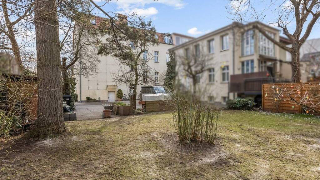 Ein gepflegter Hinterhof mit Gemeinschaftsgarten bietet zusätzliche Aufenthaltsqualität für die Bewohner. Zudem steht ein Stellplatz zur Verfügung.