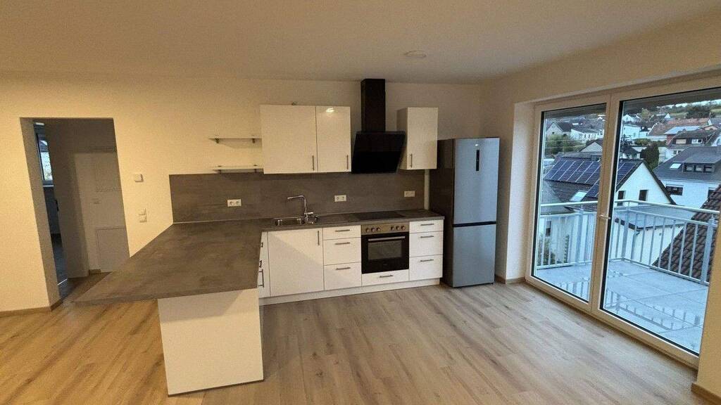 Tolle 3-Zimmer Wohnungen in Energieeffizientem KFW55 Haus, Fußbodenheizung, zentrale Luft-Wärmepumpe, kontrollierte Wohnraumlüftung durch dezentrale in den Wohnungen installierte, moderne Einbauküchen in Hochglanz weiß, ebenerdige Duschen, moderne Betonfliesenoptik in Format 30x60cm, 3-fach Fensterverglasung der Firma WERU (innen und außen weiß), elektrische Rolladensysteme, elektrische Bad-/Handtuchheizkörper, WCs mit Softclose System, Waschmaschinen- und Trockneranschlüsse in Masterbad, Fliesenspiegel in Bädern 1,20m hoch außer Dusche (deckenhoch) mit modernen weiß-matten Fliesen (30x60) ausgestattet, alle Innentüren in Röhrenspankerntüren in CPL Ausführung weiß, Ganzglasduschabtrennungen, Alle Wohnungen mit Malervlies und in weiß 2x gestrichen. Alle Räume sowie sind mit modernen LED Leuchten ausgestattet. Die Bäder 70cm breiten Spiegel mit integriertem dimmbarem Licht (kalt/weiss). Moderne Einbauküchen in Lacklaminat weiss hochglanz, Griffe Edelstahloptik metall, Vollauszüge mit Dämpfung, Arbeitsplatte und Spritzschutz in stylischer Betonoptik, Unterschränke mit Auszügen, Besteckeinsatz, Abfallsammler, Einbauspüle inkl. Armatur, Geschirrspüler, stand frei stehender großer Kühl-Gefrierkombination in Edelstahloptik, moderne schwarze Wand Abzugshaube, Giro Unterbau- Nischenleuchten, Glaskeramik Kochfeld, Einbau-Backofen.