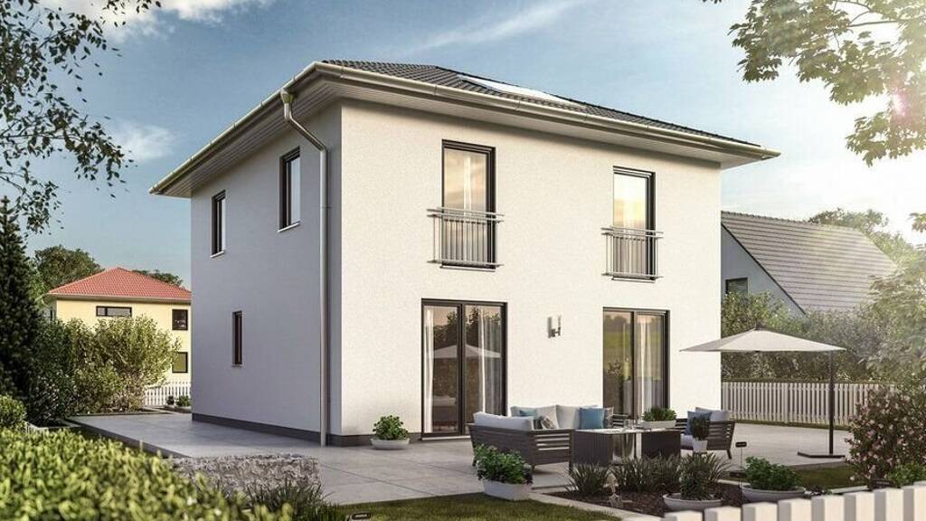 Objektbeschreibung Die kubische Form ist der Klassiker im Stadthausdesign und prägt auch das Aussehen unseres Stadthaus Flair 124. Im Inneren setzt sich der urbane Stil fort: