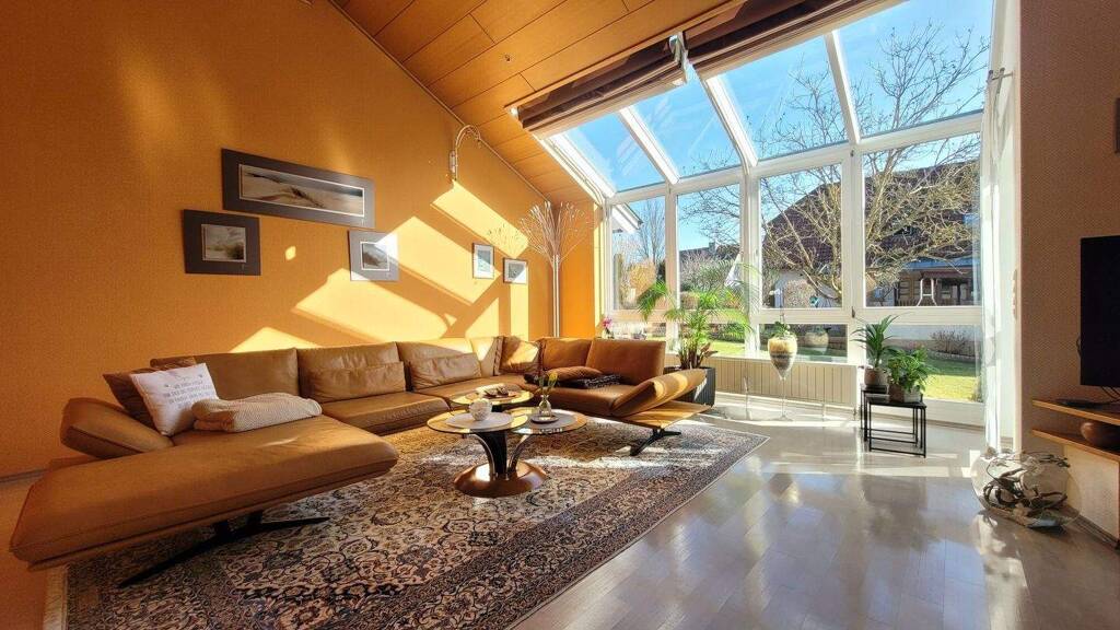 Inmitten von Höchstadt befindet sich dieses geräumige Einfamilienhaus aus dem Jahr 1995 - perfekt für Menschen, die Wert auf Individualität, Wohnkomfort und Großzügigkeit legen. Auf 236 m² Wohnfläche erwarten Sie 5 Zimmer, die sich individuell als Schlafzimmer, Ankleide, Homeoffice oder Rückzugsorte für große und kleine Familienmitglieder gestalten lassen. Herzstück der Immobilie ist der geräumige Wohnbereich mit offener Galerie, einem gemütlichen Kachelofen und großen Fensterfronten mit Blick in den eigenen Garten - ein herrlicher Platz, in dem Familie und Freunde zusammenkommen und das Leben genießen können. Der große und sehr gepflegte Garten ist ein Paradies für Kinder zum Spielen, für Erwachsene zum Entspannen oder Gärtnern und für alle, die das Leben im Grünen lieben. Der ausgebaute Keller mit 194 m² erweitert den Wohnraum mit einigen Extras. Hier können Sie entspannte Stunden in der eigenen Sauna oder im Fitnessbereich verbringen und finden neben einem Weinkeller sowie Hauswirtschafts- und Technikraum weitere Räume zur flexiblen Nutzung vor - u.a. einen gut ausgestatteten und belichteten Hobbyraum mit knapp 37 m², der künftigen Bewohnern weiterhin als Partyraum oder als zusätzliches Büro für Freiberufler/Selbstständige oder als Gästezimmer dienen kann. Für komfortables Parken sorgt eine Doppelgarage mit zwei vorgelagerten Stellplätzen und Durchgang zum Garten.