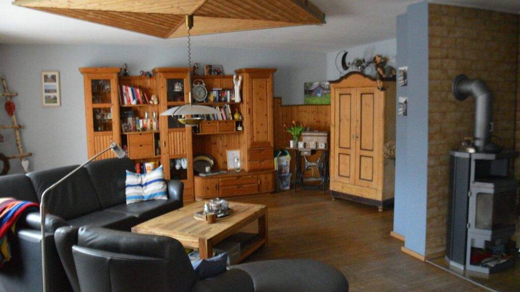 Unser 1984 in Massivbauweise erbautes Haus steht auf kleinem, pflegeleicht angelegtem Grundstück. Es umfasst 170 m² Wohnfläche verteilt auf zwei Etagen. Eine Nutzung als Einfamilienhaus für eine Familie mit Kindern ist ebenso möglich wie mit zwei getrennten Wohnungen für zwei Paare. Im Erdgeschoss finden Sie neben dem großzügigen Wohnzimmer ein Esszimmer mit offen angrenzender Küche, ein Schlafzimmer, Bad und Gäste-WC. Das Obergeschoss umfasst derzeit einen großen Wohn-Essbereich mit Küchenzeile, ein großes und ein kleines Schlafzimmer und ein Bad. Aus dem großen Raum können jederzeit durch Erstellen einer Trockenbauwand zwei Zimmer entstehen. Jede Wohnetage verfügt über einen Balkon, zum EG gehört zusätzlich eine großzügige Terrasse.