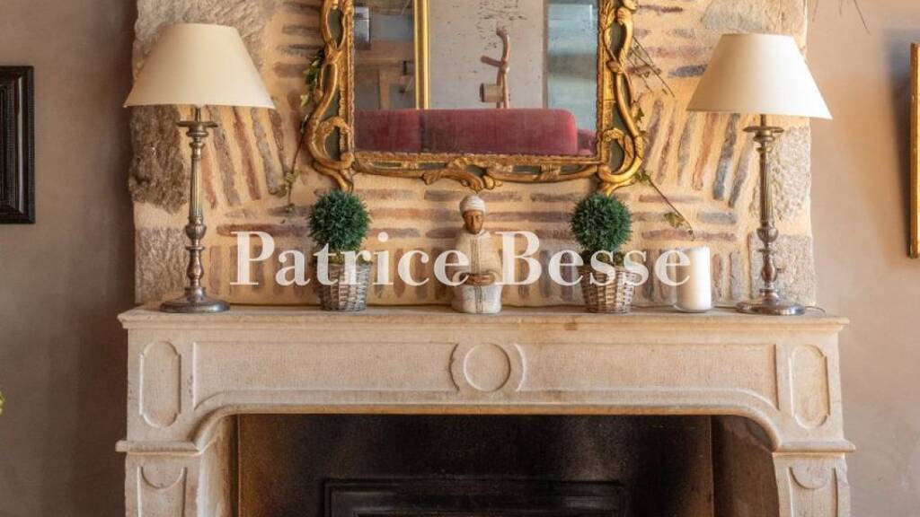 The main entrance is in the courtyard and is under a semi-circular ashlar arch. The through hall, paved with hexagonal terracotta tiles, provides access to the garden and has a staircase with oak treads and an oak banister, leading to the outbuildings and a lounge. The latter, which receives abundant natural light from two windows overlooking the courtyard and garden, features a stucco-moulded ceiling, hexagonal terracotta floor tiles and a white stone fireplace. It extends into a hallway equipped with toilets and a garden door, and connects with the large living room. This vast reception room has a French-style ceiling set over old parquet flooring. The lounge area features Versailles parquet flooring and a stone fireplace, while a French window and its twin provide a direct link to the courtyard. A semi-open ...