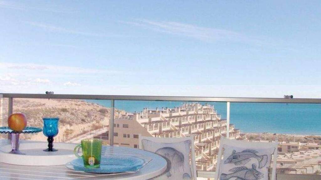 Luxuswohnung mit spektakulärem Meerblick direkt am Strand Wohnung im 4. Stock, 2 Schlafzimmer, 2 Badezimmer - eines davon en suite -, erst ein Jahr alt, 300 m vom Strand Los Arenales, 13 Minuten vom Flughafen und 15 Minuten vom Zentrum der Hauptstadt Alicante entfernt, in einer umzäunten und privaten Wohnanlage mit 20.000 m2, mit 4 Gemeinschaftspools, Sport- und Paddle-Tennisplätzen, Grünflächen, Kinderspielplätzen und privaten Parkplätzen. Die Wohnung verfügt über eine große Terrasse und Klimaanlage (kalt-warm), Video-Gegensprechanlage, Satellitenschüssel, Fliegengitter, Wasserfilter,...