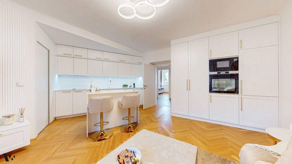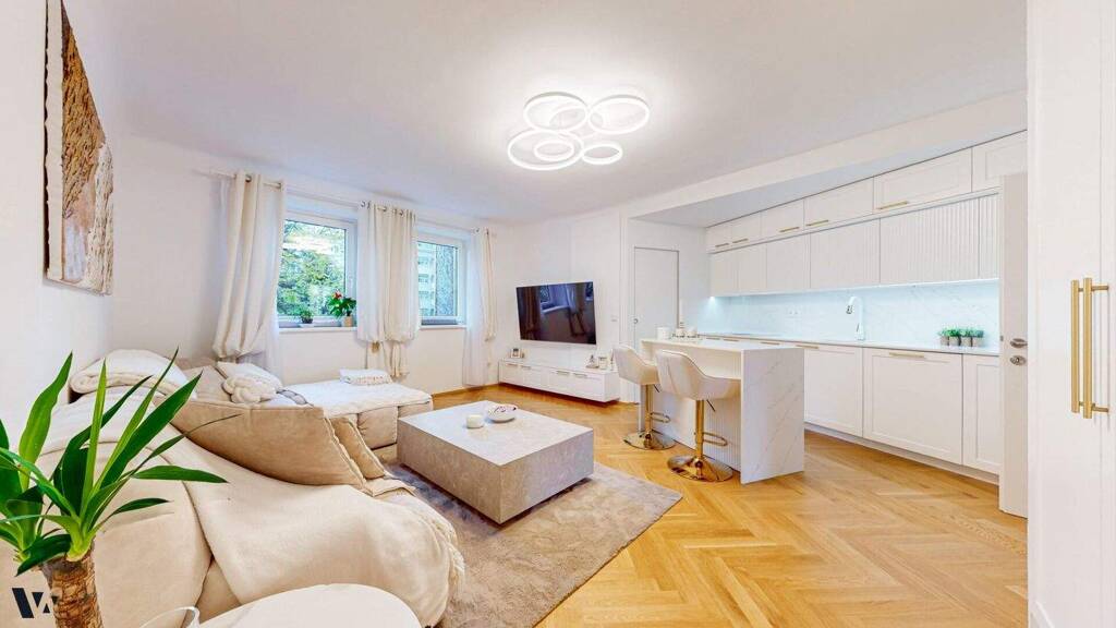 Die Wohnung wurde 2022 umfassend saniert und befindet sich in hervorragendem Zustand. Hochwertige Eichenparkettböden, moderne Feinsteinzeugfliesen in Bad und WC und eine Fußbodenheizung schaffen ein stimmiges, modernes Gesamtbild.