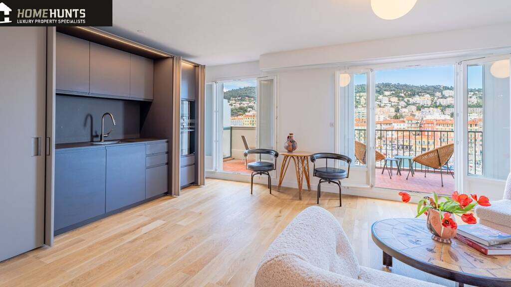 Nice Port - On the top floor of a recent, high-end residence ideally located on the Port of Nice, this superb 67 sqm 2 bedroom apartment offers exceptional views over the sea and the Port of Nice.