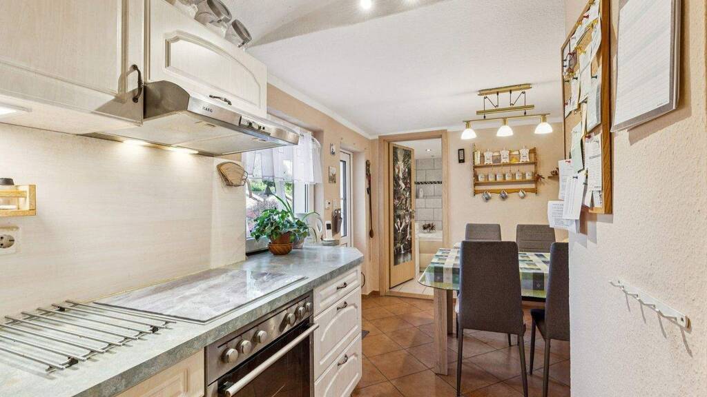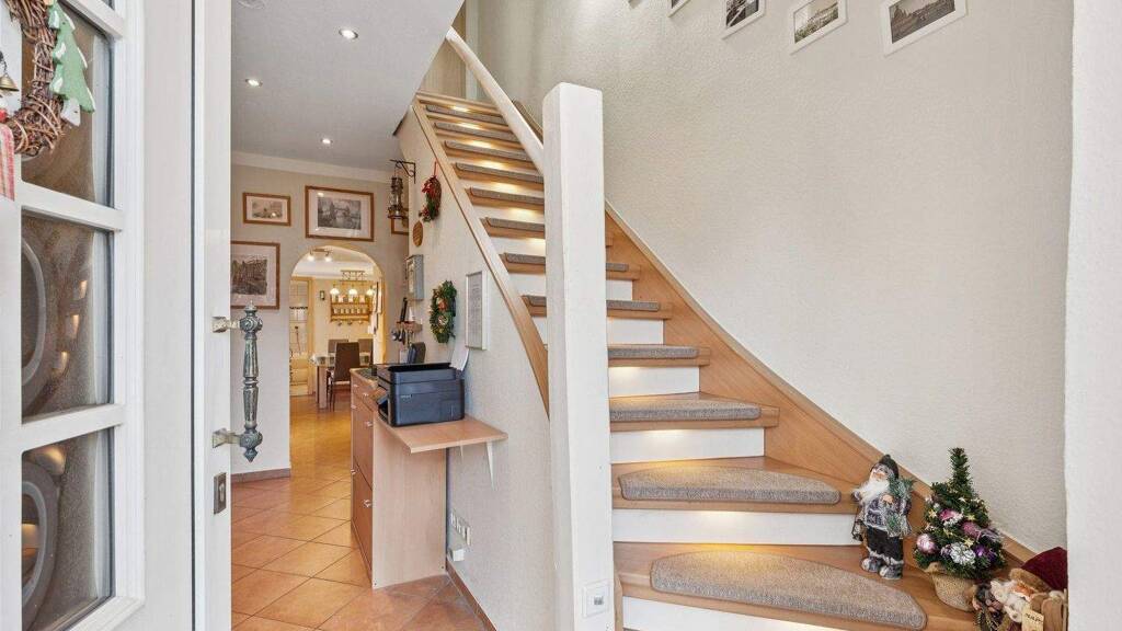 In einer familienfreundlichen Wohnanlage bietet das charmante Reihenmittelhaus eine praktische Wohn-/Nutzfläche. 5 Zimmer, zwei Bäder und zusätzliche Nutzfläche im Keller warten auf Ihre individuelle Gestaltung. Die zahlreichen Fenster sorgen für helle, freundliche Räume und eine angenehme Wohnatmosphäre. Abgerundet wird das Angebot durch eine durchdachte Raum-aufteilung, die sowohl Rückzugs-möglichkeiten als auch Platz für gemeinsames Wohnen bietet. Der liebevoll angelegte Garten mit Außenpool unterstreicht das harmonische Gesamtbild und lädt zu gemeinsamer Zeit im Freien ein. AUSTATTUNGSMERKMALE . 5 Zimmer . 2 Bäder . Kamin . elektrische Außenrollläden . Gastherme von 2012 . Brunnen und Gerätehaus . Außenpool mit Solarheizung . Carport mit Stellplatz . Photovoltaik - Balkonkraftwerk (8 Panels), 4 KW Speicher . Glasfaser