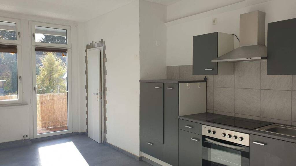 Wir bieten aktuell eine wunderschöne Wohnung in Lauter-Bernsbach an. Sie besitzt 2 große Räume, eine kleineren Raum, eine große Küche und ein großes Tageslichtbad mit Badewanne. Zudem gibt es in der Küche eine kleine Abstellkammer und einen Balkon. Am Ende des Wohnungsflures gibt es zusätzlich eine kleine Abstellmöglichkeit. Die Küche hat bereits auch eine Einbauküche, die gern vom neuen Mieter übernommen werden kann. Die Wohnung wurde 2020 komplett neu ausgebaut und besitzt neue energieeffiziente Fenster und ein neues Bad. Die Fußböden sind ebenfalls in diesem Zusammenhang erneuert worden. Die Heizung wurde erst 2024 erneuert. Es handelt sich hier um eine Stromheizung, weshalb die Heiznebenkosten nicht direkt mit dem Vermieter abgerechnet werden.