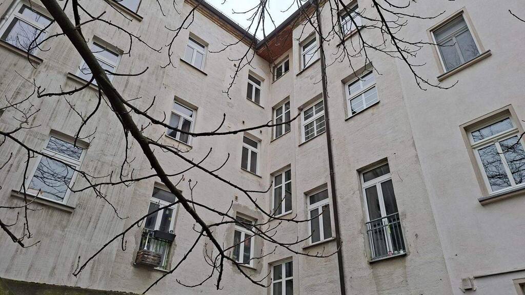 Ein DenkmalgeschĂĽtztes Mehrfamilien mit Innenhof und gepflegtem Treppenhaus.