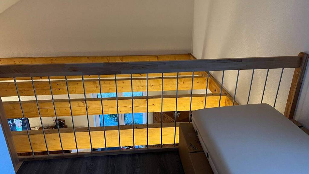 Über eine Holztreppe im Wohnbereich gelangt man in das Dachgeschoss. Dieses wird derzeit als Abstellfläche genutzt (ca. 15 m²), kann jedoch bei Bedarf zu weiterem Wohnraum ausgebaut werden. Ein zusätzlicher Abstellbereich bietet Platz für saisonale Gegenstände.