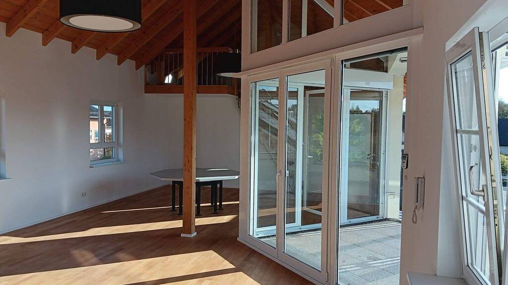 Eine top renovierte 4-Zimmer Wohnung im OG und Galerie im DG in einem Zweifamilienhaus wartet auf Sie. Auf ca. 150qm lässt es sich gut wohnen. Vom Wohnzimmer aus betreten Sie den Westbalkon. Eine komplette neue Einbauküche ist vorhanden. Vom Wohn/Esszimmer aus geht es über eine Wendeltreppe hoch zur Galerie. Dort ist ein weiteres Zimmer und ein zweites Bad mit Dusche. Gegenüberliegend ist noch eine kleinere offen gehaltene Galerie, denkbare Nutzung als Büro oder Homeoffice Arbeitsplatz. Zur Wohnung gehört ein Stellplatz im Hof sowie optional eine halbe Doppelgarage die als Kellerraum genutzt werden kann. Die Kaltmiete beläuft sich auf 1.300€ monatlich (incl. KfZ Stellplatz im Hof). Alle Nebenkosten, außer dem Strom, werden pauschal mit 400€ berechnet, darin sind auch die Heizkosten enthalten. Der Strom wird einmal jährlich über sep. Zähler abgelesen und abgerechnet. Wichtiger Hinweis, keine Haustiere und nur Nichtraucher.