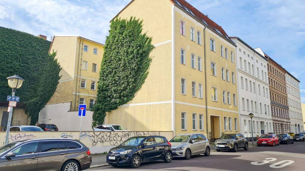 Das um 1910 in Massivbauweise errichtete Objekt ist über eine Durchfahrt durch das Vorderhaus zu erreichen. Zwischen den beiden Häusern als auch auf Rückseite des Hinterhauses sind mehrere KFZ-Stellplätze vorhanden. Diese befinden sich im Gemeinschaftseigentum und sind nicht den Wohnungen zugeordnet. Derzeit gibt es die Überlegung, diese gezielt zu vermieten um Einnahmen für die Hausgemeinschaft zu erzielen, um die Rücklage zu erhöhen. Diese beläuft sich gegenwärtig auf ca. 65.000,-€. Im Kellergeschoss befindet sich die Gaszentralheizung, die das Gebäude mit Wärme versorgt.