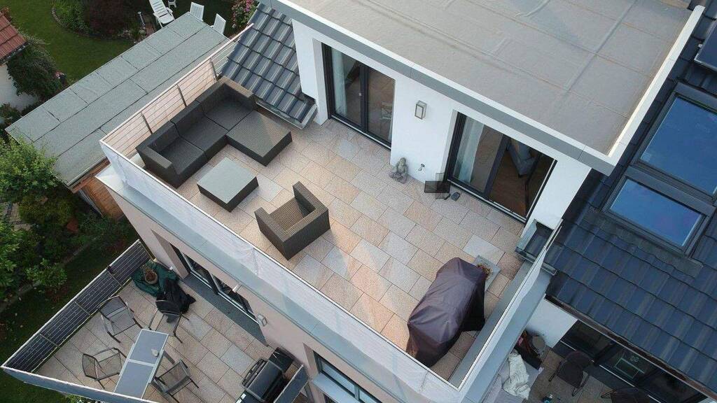Bemerkungen: - Designbad mit großer Eckbadewanne, 2 Waschbecken - Dusche mit Kopfbrause und Echtglas-Tür -Separates Gäste-WC -Eiche- Design- Böden in allen Räumen -Fußbodenheizung -Große Dachterrasse mit grau-beigem Granitbelag -Gegensprechanlage mit Videokamera -Elektrische Rolläden rundum -Sat-Antennen-Anschluss -Schieferfarbene Granitböden im Treppenhaus -Edelstahlgeländer im Treppenhaus und auf der Dachterrasse -Außenbeleuchtung und Außenwasserhahn auf der Dachterrasse