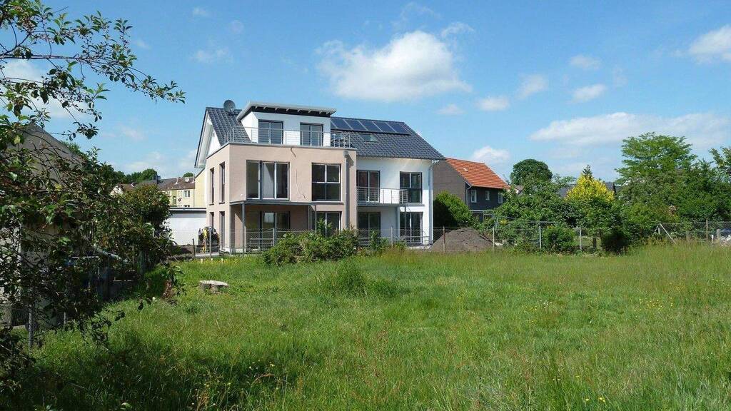- Modern, sehr hell und freundlich, im Dachgeschoss - Geschmackvolles 5-Familien-Haus in ruhiger, grüner Lage -Moderner Grundriss mit integrierter Küche -Südausrichtung mit bodentiefen Fenstern und Fenstertüren -Große Süd-Dachterrasse mit Weitblick ins Grüne - Abstellraum hinter dem Gäste- WC -KFW 40 - Energiesparhaus mit Solaranlage zur Warmwasserbereitung -Moderne Luft - Wärmepumpen - Heizung -Gefliester Kellerraum mit privaten Anschlüssen für Waschmaschine und Trockner -Abstellraum für Fahrräder -PKW- Stellplatz