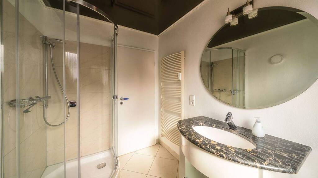 Es ist ein komfortables Bett, sowie ein geräumiger Kleiderschrank vorhanden. Ein großer Fernseher mit Satelitenanschluss und Internetanbindung. Die komplett eingerichtete Küche hat alles zu bieten: einen Kühlschrank mit Gefrierfach, großes Induktions-Kochfeld, Backofen, Kaffeemaschine, Toaster, Geschirr, Besteck und weitere Kochutensilien. Waschmaschine und Trockner im Allgemeinraum entgeltlich über WeWash App nutzbar.