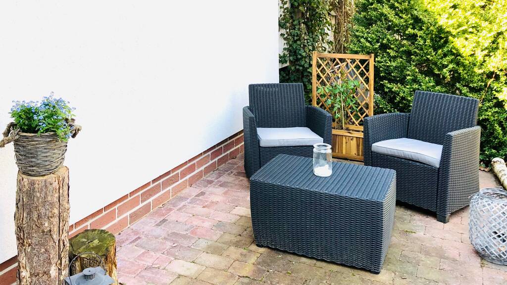 ???? Diese in 2017 sanierte geschmackvolle Maisonette Wohnung ist eine Einliegerwohnung mit eigenem Hauseingang. Die Wohnung hat eine Wohnfläche von 52 m² zuzüglich der Fläche von 1 Terrasse (18 m²). Die Wohnung ist ruhig gelegen. Die Wohnung verfügt über eine große Wohnküche mit Einbauküche sowie ein großes Dachstudio. Im Erdgeschoss befinden sich die Wohnküche mit Waschmaschine, ein neu saniertes Badezimmer sowie ein Hausflur mit Garderobe. Die Wohnküche hat über eine doppelte Terrassentür Ausblick auf den Garten. Eine größere Terrasse befindet sich zur östlichen Hausseite vor der Haustür. Das Dachstudio ist über eine Holztreppe zugänglich. Im Dachstudio stehen ein Doppelbett (180x200) sowie eine Wohnecke mit Couchgarnitur und Fernseher. Das neu sanierte Badezimmer verfügt über eine ebenerdige Dusche sowie einen Handtuchwärmer. Die Wohnung verfügt über Parkett- und Dielenböden, elektrische Rollläden und Telefonanschluss. Flachbildfernseher, Radiowecker, Bettwäsche und Handtücher sowie eine mit Geschirr ausgestattete Küche sind vorhanden. WiFi-Anschluss des Hauses kann ohne Gewähr für den normalen privaten Gebrauch mit verwendet werden.
