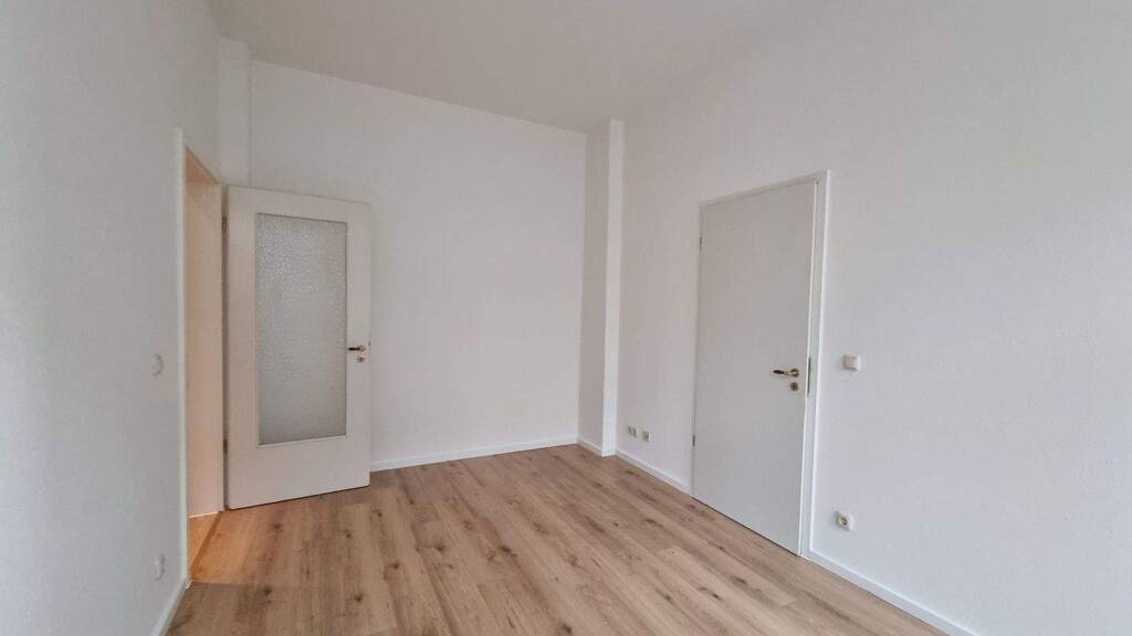 Zweiraumwohnung im EG Mitte: Wohnraum mit Zugang zur Küche. Separater Schlafraum sowie innenliegendes Bad mit Dusche. Bodenbelag Laminat in moderner Dilenoptik. Bad gefliest. WM-Anschluss im Bad. Kellerabteil.