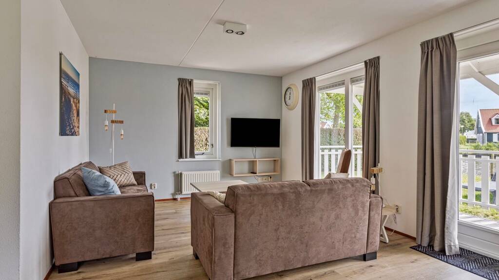 Dieses schöne, freistehende Ferienhaus für 6 Personen befindet sich auf einem Privatgrundstück, ist doppelt verglast und gut isoliert. Sie können Ihr Frühstück auf der überdachten Veranda oder am Abend mit einem guten Buch und einem Glas Limonade genießen. Das Haus verfügt über ein geräumiges Wohnzimmer mit neuen Möbeln, eine Küche mit Einbaugeräten, 3 Schlafzimmer, 2 Toiletten, ein Badezimmer und einen Abstellraum. Sie haben auch die Möglichkeit, Ihr Auto auf Ihrem Grundstück zu parken.