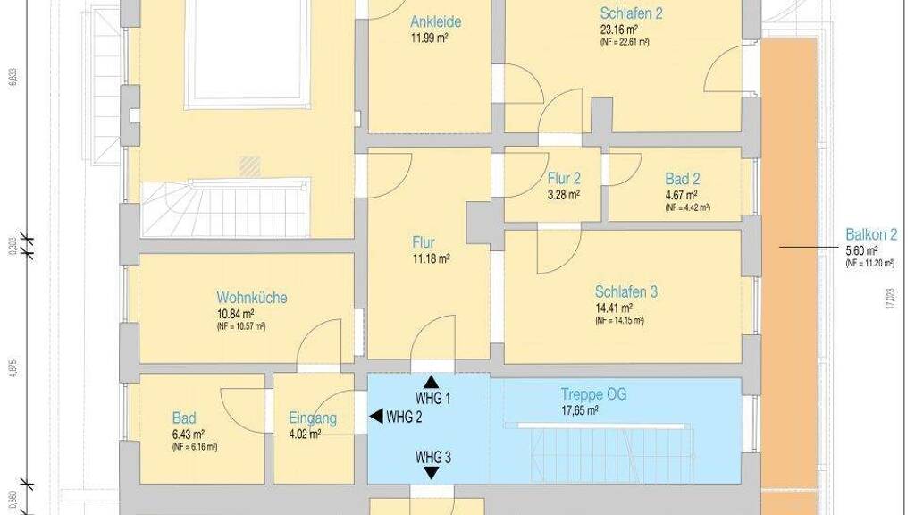 Hinweis: Die Flächenangabe beinhaltet die aus den uns vorliegenden Unterlagen ersichtlichen bzw. ersatzweise am Objekt ausgemessenen Flächen und erhebt keinen Anspruch auf Vollständigkeit oder Richtigkeit, insbesondere in Bezug auf DIN-Normen, Berechnungs- und Nutzungsverordnungen oder Bauordnungen.