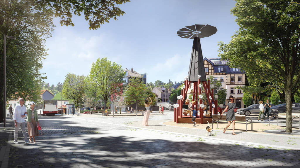 Mit Fertigstellung des Sanierungsprojektes Planitzer Markt befinden sich angrenzend zum Gewerbe Freifläche, Grünfläche und Aufenthaltsplätze für Anwohner und Passanten. Informationen und Bilder können Sie dazu unter folgendem Link erhalten: