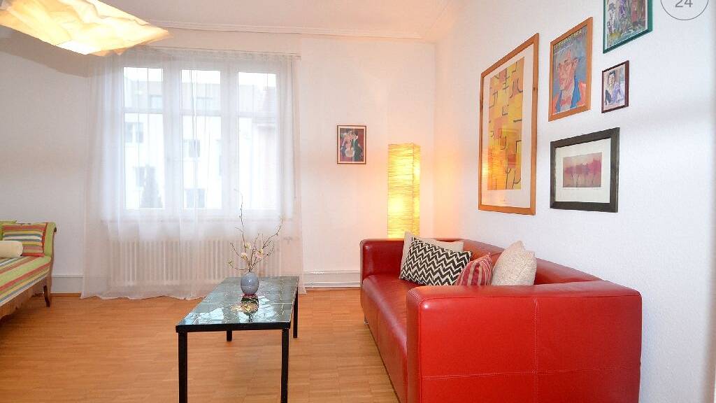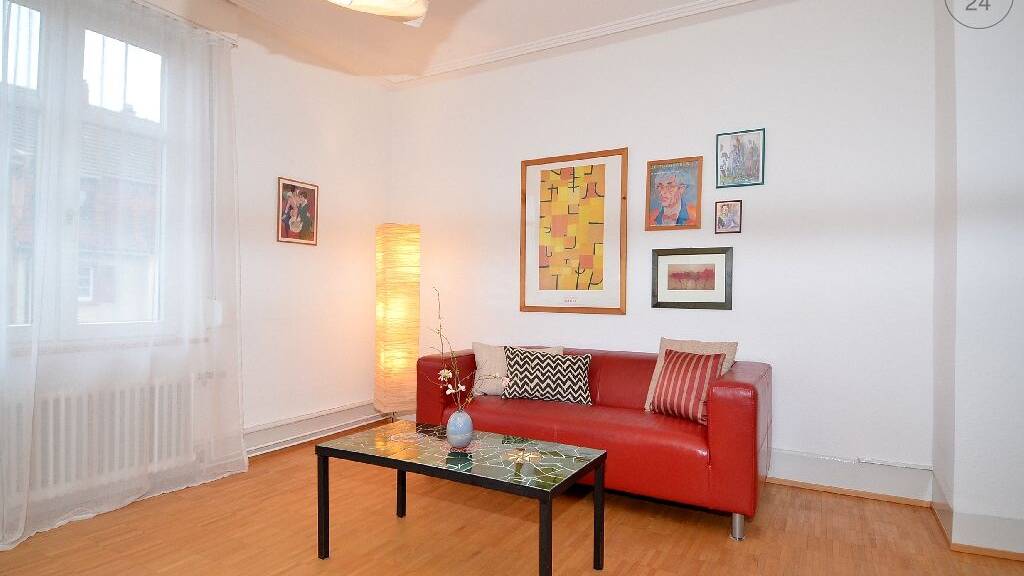 Diese schöne und zentral gelegene 2-Zimmer Wohnung liegt im 2.OG eines charmanten Stadthauses der Jahrhundertwende in Lörrach-Stetten. Die Wohnung verfügt über ein Wohnzimmer, ein Schlafzimmer, eine Wohnküche und ein Badezimmer. Das Wohnzimmer beinhaltet ein Ledersofa, einen Couchtisch, eine Récamiere, ein Schreibtisch und ein TV-Gerät. Das Schlafzimmer hat ein französisches Bett (140/200) und einen großen Schiebetürenschrank, der genügend Stauraum für Ihre Kleidung hat. Die geräumige Wohnküche bietet eine Einbauküche, die komplett ausgestattet ist inkl. Geschirrspülmaschine sowie einen Esstisch, an dem 4 Personen gemütlich zum Essen Platz nehmen können. Das Tageslichtbadezimmer verfügt über eine Badewanne, eine separate Duschkabine und eine Waschmaschine. W-Lan Anschluss ist vorhanden und im Mietpreis inbegriffen. Ein Parkplatz steht nach Absprache zur Verfügung. Die Wohnung kann von einer 1 Person für 1145 Euro/Monat inkl. aller Nebenkosten angemietet werden. Von Oktober bis einschließlich April fällt ein Heizkostenaufschlag in Höhe von 50 Euro/Monat zusätzlich an. Eine Zwischenreinigung alle 14 Tage wird mit 20 Euro/Std. berechnet. Die Endreinigung nach Auszug wird ebenso mit 20 Euro/Std. verrechnet. Ein Haftpflichtversicherungsnachweis wird von den Vermietern erwünscht.